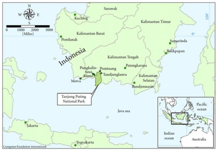 Este Parque Nacional (Tanjung Puting) se encuentra en la isla de Borneo, en su parte Indonesia, llamada Kalimantan, concretamente en la provincia de Kalimantan Tengah (Borneo Central). Con una extensión de 4.150 km², fue creado en la década de 1930 por el gobierno colonial holandés con el fin de proteger principalmente las poblaciones de orangután de Borneo (Pongo pygmaeus), mono narigudo (Nasalis larvatus) y rinoceronte de Sumatra (Dicerorhinus sumatrensis). En 1977 fue designado como Reserva de la Biosfera de la UNESCO y en 1982 como parque nacional por el Gobierno Indonesio.