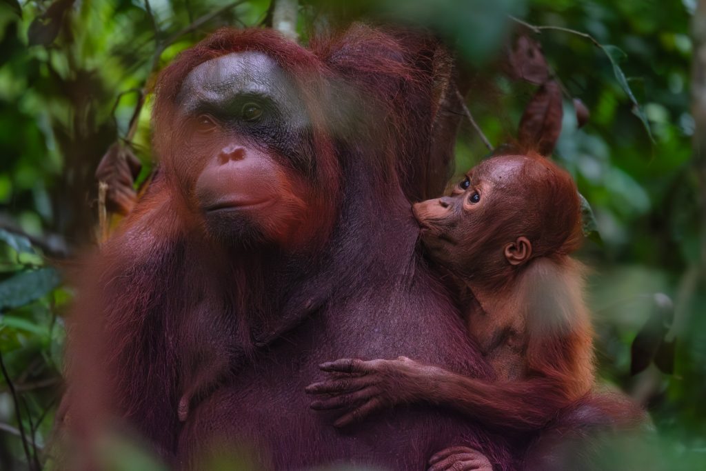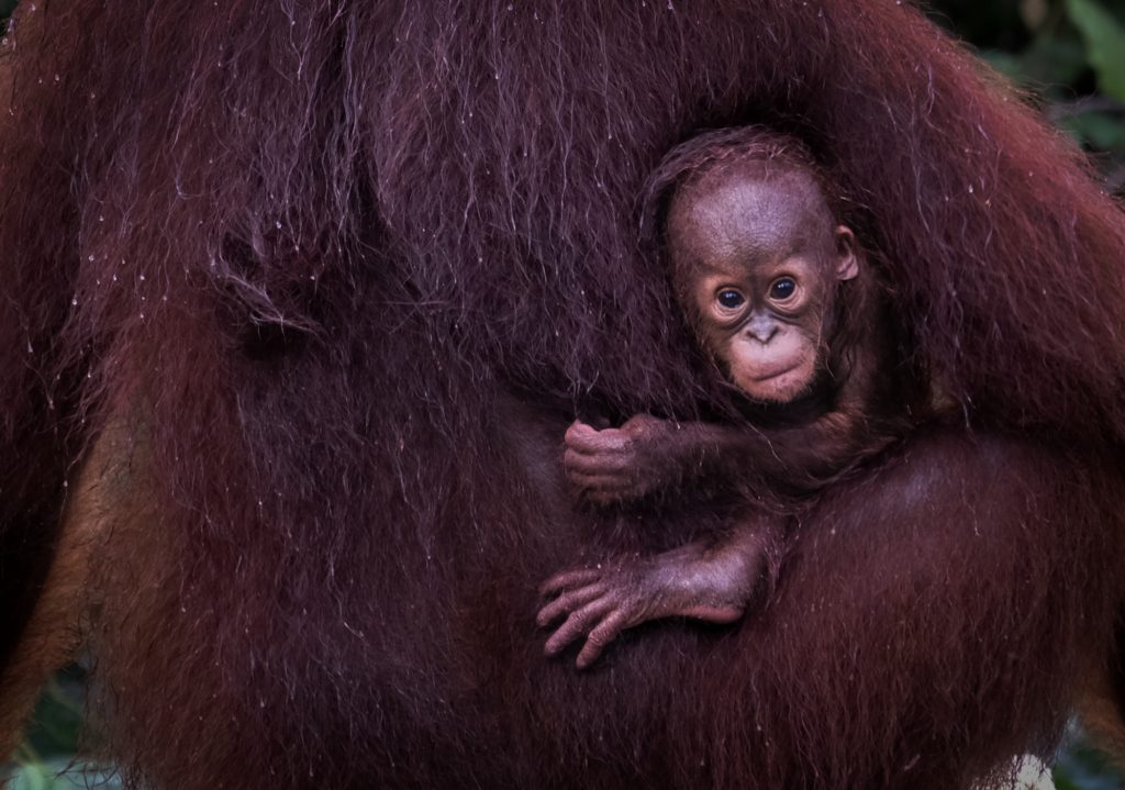 Los orangutanes adultos son solitarios, pero las crías permanecen hasta los 8 años con sus madres, más que cualquier otro gran simio. Es por eso que solo dan a luz cada 7 u 8 años. Incluso después de separarse de las madres, a veces vuelven con ellas de vez en cuando.