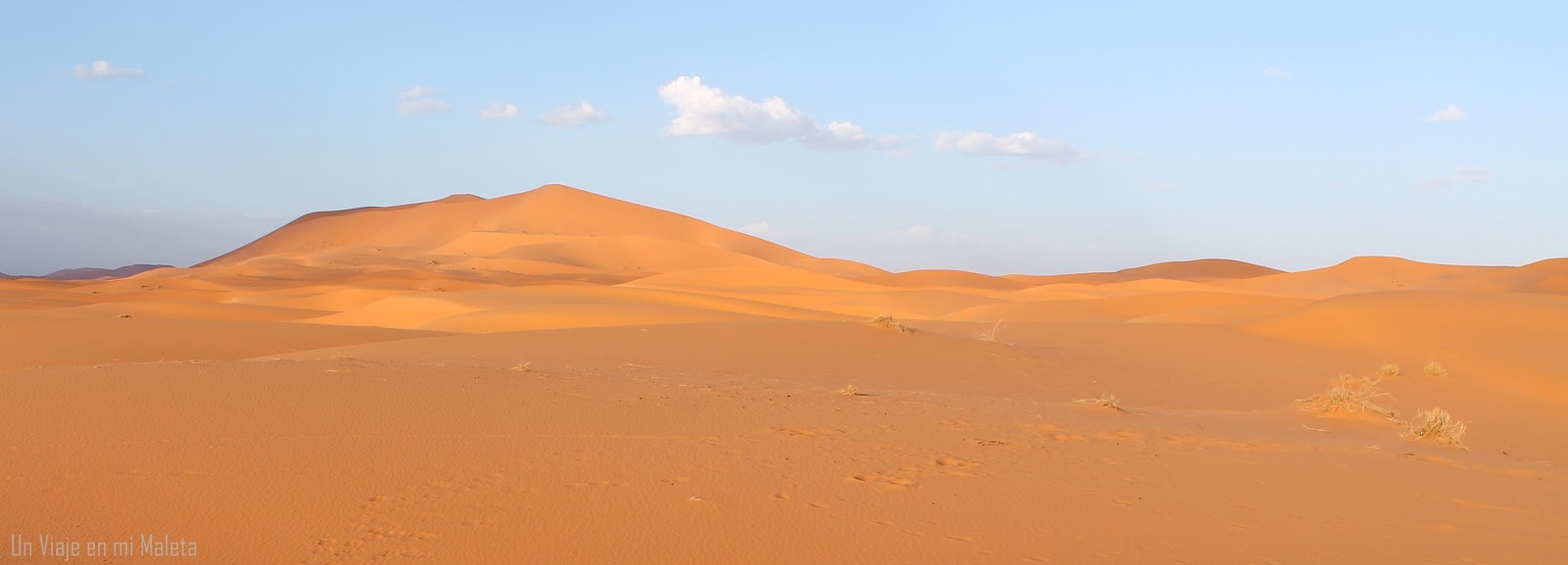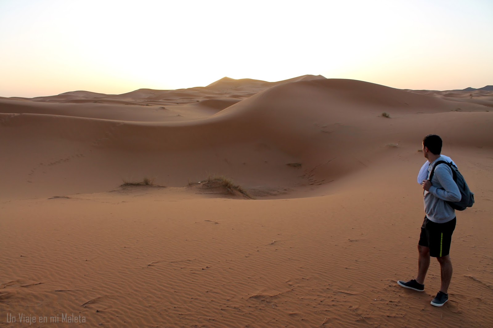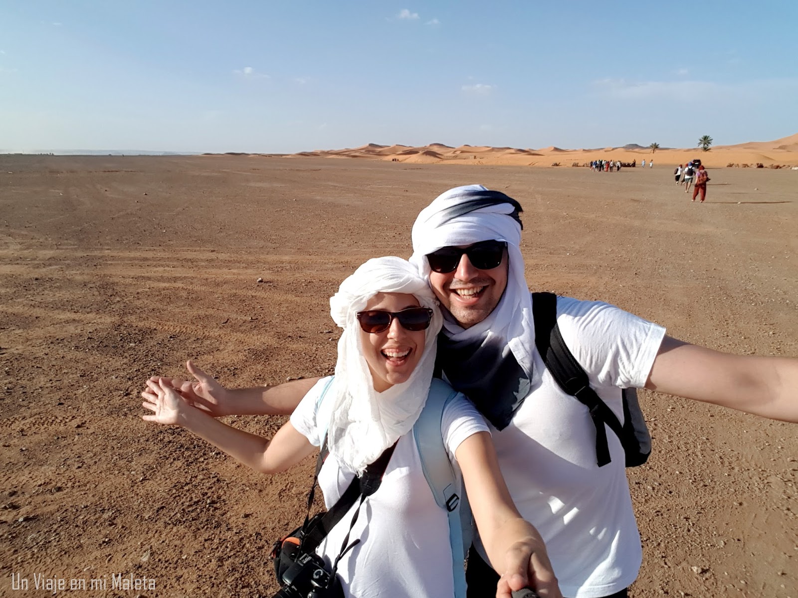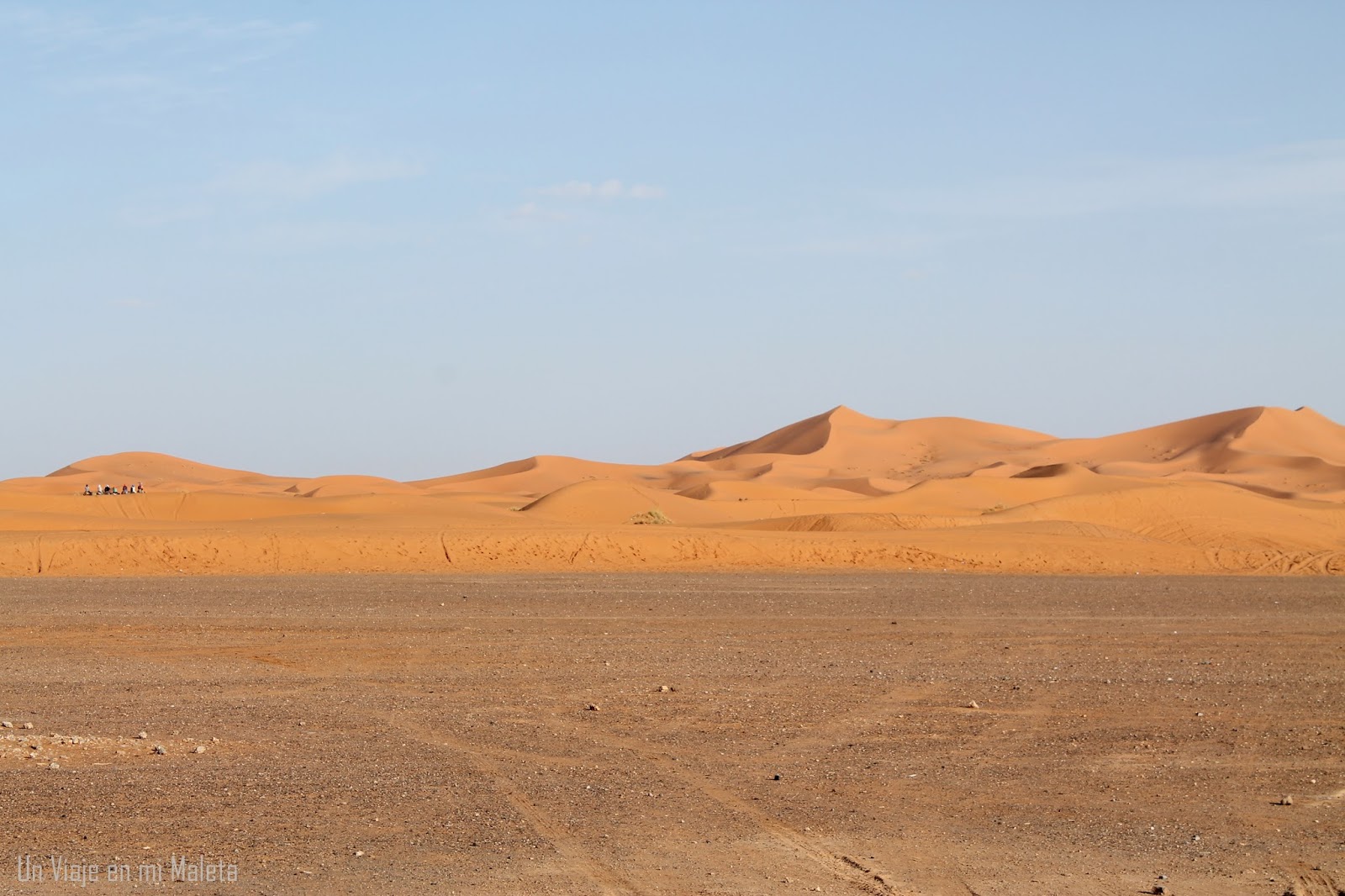 Erg Chebbi, conocido también como Desierto de Merzouga, se encuentra a unos 600 km de la ciudad de Marrakech y eso se traduce en un «porrón» de horas en un bus.
